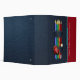 Stylish looking teacher's binder done in a blue denim looking background, with a solid red, on the front right half. Graphics of colored pencils and a red heart charm appear to be held with denim tabs. White text, on the front of the binder, is ready to personalize for yourself. Great for organizing all your class schedules, grade book, and assignments.