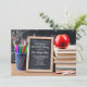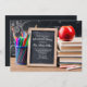 A handsome retirement party invitation, for a special teacher, featuring a desk with pencil holder, books, a red apple and a small chalk board with the party details. (<a href="https://www.freepik.com/free-photos-vectors/background">Background photo created by valeria_aksakova - www.freepik.com</a>). <br/><br/>The card is easy to customize with your wording, font, font color, paper shape options and choice of six paper types.<br/><br/>Not exactly what you're looking for? All our products can be custom designed to meet your needs at no extra charge.<br/><br/>Simply contact us at askcottonlamb@gmail.com.<br/><br/>Coordinating products available: Just ask us!"