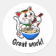 Let your students know they've done a great job with this fun Japanese lucky cat sticker! This cute feline is feeding on a nice noodle bowl! The "Great work!" caption can be personalized... just type your favorite praise in the box above and watch the preview image update.