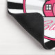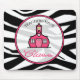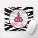 A mousepad featuring a black zebra print background. Logo of The Pink Schoolhouse surrounded by text "Teachers Have Class" inside sheer circle shaped frame outlined in pink.