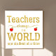Typography gold script inspirational teachers quote with red apples: "Teachers change the world one child at a time". Please note that the background color is editable. You can change it after selecting "customize" option.