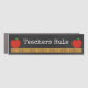 Fun teacher's car bumper magnet done in a chalkboard background and graphics of a ruler and two red apples. Teachers Rule in custom white text can be personalized to read what you want.