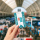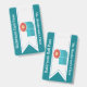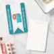 Fun school bathroom hall pass done in teal with a white ribbon, running down the middle, with graphics of a colorful toilet paper symbol. Personalize the custom text to read what you want.