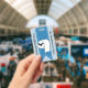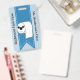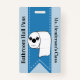 Fun school bathroom hall pass done in light blue with a blue ribbon, running down the middle, with graphics of a cartoon roll or toilet paper. Personalize the custom text to read what you want.