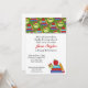 A cute invitation perfect for any teacher retiring. It features a green top with cartoon school books and pencils. A graphic of a white ribbon runs along the top. You customize all text.