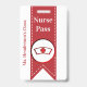 Fun school library hall pass done in white with a red ribbon, running down the middle, with graphics of a nurse symbol. Personalize the custom text to read what you want.