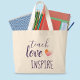 Tote bag teach love inspire with watercolor heart.
