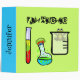 Cute teacher's three ring Avery science binder done in light green on the front and back, and turquoise on the spine. Cartoon graphics of colorful test tubes, beakers and a cute frog decorate the front and a large beaker, on the back of the binder. Fun custom black text, on the front and spine, is ready to personalize for yourself. Great for organizing all your class schedules, grade book, and assignments.