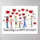 Great for classroom wall decor. Perfect gift for the special teacher in your life. A GREAT way to let educators know they are appreciated. Features kid artwork in vibrant colors portraying bigg'uns and littl'uns holding hands and surrounded by hearts.