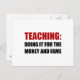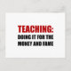 High school teachers to university education professors and students joke ?Teaching: doing it for the money and fame?. Check out this funny custom design on tees, shirts, mugs, case, gift and apparel.