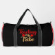 This black and red duffle bag celebrates the special bond between teachers and their students, featuring the heartwarming phrase "Teaching my Tribe" in a stylish, two-toned font with apple icons. It's an ideal gift for dedicated educators who cherish their classroom community. Edit color of the bag caps and body in the Design tool to your favored colors.