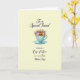 Designed with a soft cream background, this card centers on a muted teal teacup and saucer that feel calm and inviting. From the cup, a small bouquet spills out in soft pink, sunny yellow, gentle purple, and leafy green, like a sweet gift set down for someone close ❤️. Nestled among the petals, a small brown teddy bear peeks out with a shy, affectionate look that hints at friendship and care. Above the cup, the words “To a Special Friend” sit near the top in dark lettering that curves lightly across the open space. Below the illustration, the message “SENDING A Cup of Love ON YOUR First Mother’s Day!” stretches across the lower area in the same dark text, with key words standing out through size and spacing 🌼. The lighting is gentle, giving the cup a smooth shine while the flowers and bear look soft and touchable. The cup’s teal tone contrasts quietly against the cream background, with the multicolored flowers clustered tightly inside the rim.