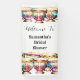 This vibrant and eye-catching design features 8 opulent and ornate teacups with faux gold rims and handles that line the top and bottom of this wall hanging. The cups have pretty floral flowers on them in shades of pink, purple, blue, aqua and green and rest against a white background that has editable black calligraphy script and elegant text templates on it for your custom wording. These realistic 3D looking watercolor ai partea cups are ideal for a bridal shower "high tea" party.