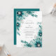 A cascade of deep teal blossoms and swirling foliage creates an enchanting, abstract botanical motif. Delicate silver-toned leaves intertwine with the painterly blooms, evoking a sophisticated yet ethereal atmosphere. This design captures a romantic, artistic essence for a memorable occasion.