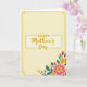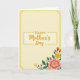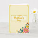 Designed with a soft, creamy yellow background in a tall vertical layout, this greeting card keeps the mood gentle and affectionate ❤️. A thin golden outline with tiny dotted details runs around the edge, adding a light decorative rhythm without crowding the space. Centered near the top-middle, the words “Happy Mother’s Day” sit inside a second dotted rectangle that echoes the outer border. “Happy” appears in a simple, sturdy letter style, while “Mother’s Day” is written in a smoother, flowing look that feels like a caring note. The open space around the message gives the text room to breathe, like a quiet pause before a warm hug 👩. In the lower right corner, a floral cluster leans inward toward the words, as if offering them like a small bouquet. A large pink flower with a yellow-speckled center leads the arrangement, surrounded by slim orange trumpet-shaped blooms, bright yellow accents, and deep teal leaves.