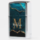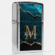Teal Agate Geode Gold Monogram Script Typography Zippo Lighter