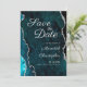 Elegant save the date card with teal blue marble agate with silver glitter wedding photo save the date card. Couple photo on the back. Announce your special day with our Teal Silver Agate Save the Date card. The front features a striking aqua blue and silver gemstone-inspired design. The back of the card features a photo of the couple. The rich colors and gemstone details set an unforgettable tone, while the personal photo on the back allows loved ones to share in your excitement from the very first glance.
