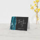 This elegant modern wedding thank you card features a teal blue watercolor agate border trimmed with faux silver glitter. The customizable text combines the words "Thank You" in silver gray handwriting script and the names of the bride and groom in italic font on an off-black background.