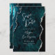 Teal Agate Silver Script Wedding Save the Date Invitation