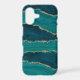 Teal Agate Waves – Abstract Marble with Gold iPhone Case