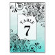 Teal and Black Fancy Wedding Table Number Card