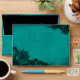 Gothic black lace over teal grunge background envelope design.