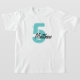 Our name and age T-shirt with black and teal text is perfect for your childs milestone birthday party and can be worn all year. You can change the name and age on this T-shirt before ordering.