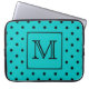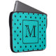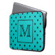 Teal and Black Polka Dot Pattern. Custom Monogram. Laptop Sleeve
