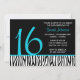 Teal and Black Zebra Sweet 16 Number Birthday Invitation