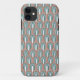 This phone case has an art deco design of arches and upside-down Ys repeating across the design in teal and copper on a field of white. Want different colors? Message me.