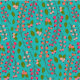 Berry pattern print fabric in accents of coral pink, teal blue - turquoise and burnt orange for Christmas or any joyful occasion.