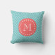Teal and Coral Chevron with Custom Monogram Throw Pillow