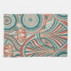 This nouveau style abstract design radiates movement in concentric circles and flowing lines in soft turquoise, coral, and cream tones.
