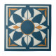 Teal and Cream Azulejo Mandala Ceramic Tile