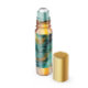 A label for perfume roller bottles featuring a faux gold and teal marble colored background.
