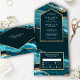 Teal and Gold Agate Marble Wedding All In One Invitation