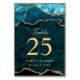 Teal and Gold Faux Glitter Agate Wedding Table Number