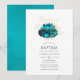 Teal and Gold Floral Baptism Invitation