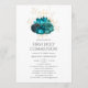 Having your Teal And Gold Floral First Holy Communion Invitation match the theme of your party is a great detail that your guests will appreciate. The thoughtfulness of a consistent party theme is often appreciated and can show your guests that you can host a cohesive event.