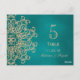 TEAL AND GOLD INDIAN WEDDING TABLE NUMBER CARD