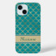 Teal and Gold Mermaid Scales with Monogram Name Case-Mate iPhone Case