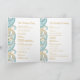 Indian wedding program with teal and gold paisley designs, bi-fold. Perfect for traditional weddings and other special events.