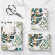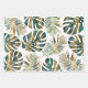 Teal and gold patterned tropical leaves wrapping paper sheets