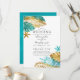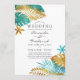 Teal - turquoise and gold watercolor tropical foil foliage wedding program cards designed to be quickly and easily customized to your event specifics.