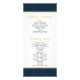 Modern teal and navy blue tropical leaves wedding ceremony and party program. This outstanding design features leaves of Split Leaf Philodendron (Monstera deliciosa) or Swiss Cheese Plant and palm leaves in teal with gold outline on dark blue. A white frame with gold outline includes your text. The back displays a gold and blue polka dot pattern.