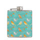 Teal and Orange Colorful Birds Pattern Turquoise Flask