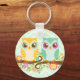Teal and Orange Owls on Flower Branch - Key Chain
