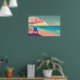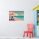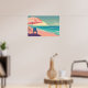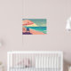 Teal and Peach Beach, Blue waterChair and Umbrella Poster