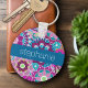 Teal and Pink Floral Pattern with Custom Baby Name Keychain