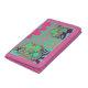 This colorful fractal trifold wallet has bright and vibrant colors such as teal and pink. This wallet is great for your money, credit cards and your licenses. You can choose from the style or color of this wallet before purchasing.